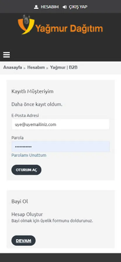Web Address of Yağmur B2B System: http://yagmurb2b.com/ - https://www.yagmurdagitim.com/