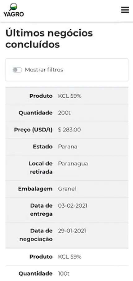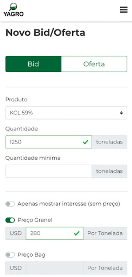 YAGRO Brasil is an agricultural trading platform for fertilizer products. We connect buyers and sellers in Brazil on a real-time, anonymous and easy-to-use platform, with daily bids and offers being launched for a variety of products.