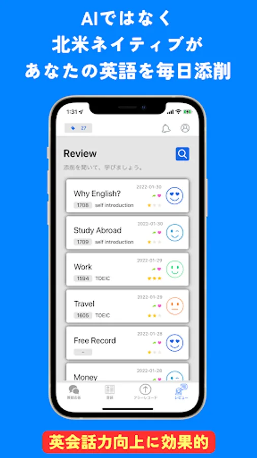 [1] Record and send your English (3 types of Q&A, reading aloud, and free record modes)