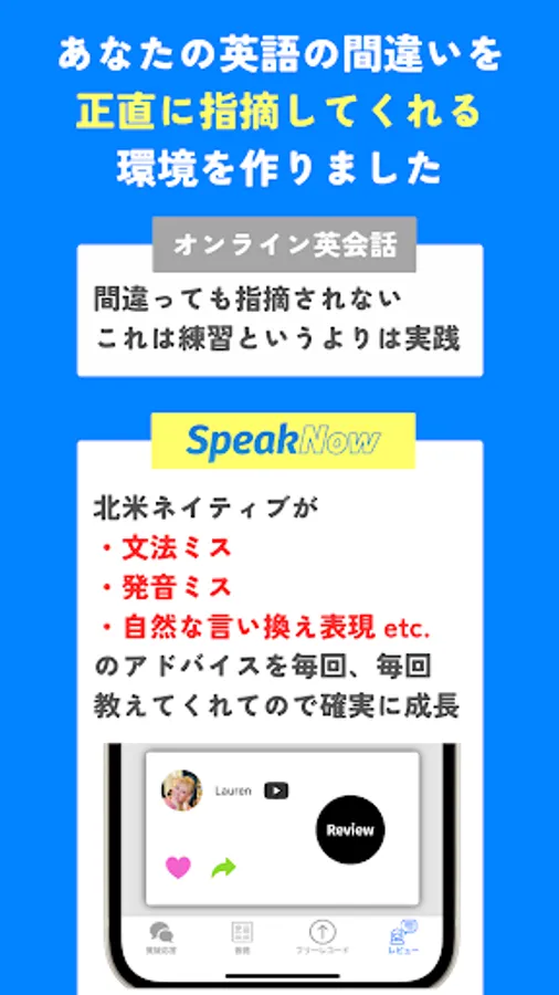 If you ultimately want to have smooth communication in English, including human-to-human emotional interactions, rather than an AI, SpeakNow is perfect for [real speaking practice].