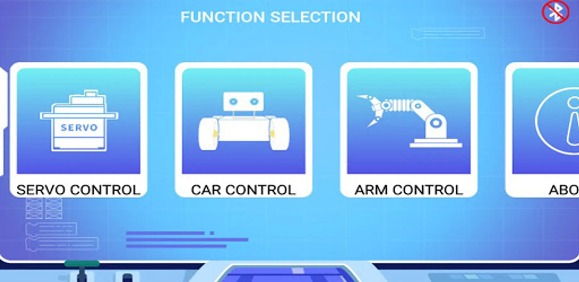 Main functions: Bluetooth connection to 16 steering gear products, real-time control steering gear Angle and car control, etc