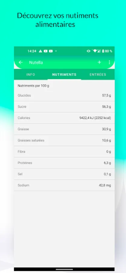 The app also provides information on several thousand foods, including carbohydrates and other nutrients.