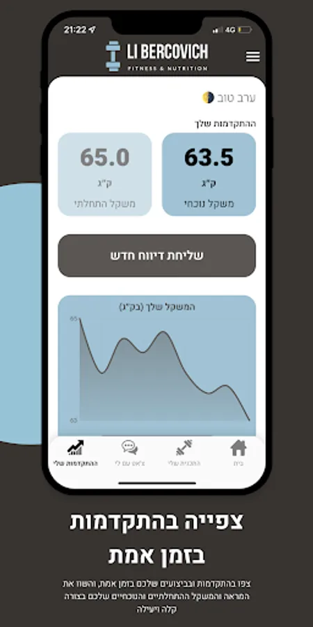 With the app, you can watch your progress and performance in real time, and compare your initial and current look and weight easily and efficiently.