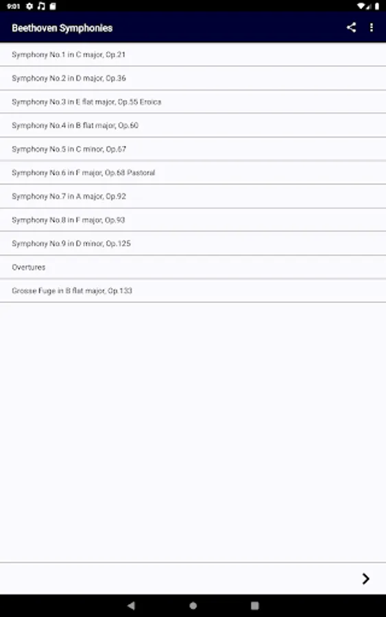 This application is intended to become familiar with the collection of Beethoven Symphonies complete, Overtures, Grosse Fuge.