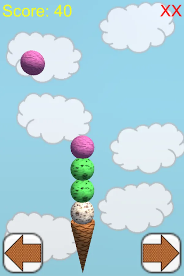 Prepare yourself for a downpour of ice cream scoops and do your best to catch them all! Maneuver your ice cream cone to catch the falling ice cream, but make sure not to drop any! Three strikes and you're out! Easy to use buttons and fun music make this game fun for everyone!