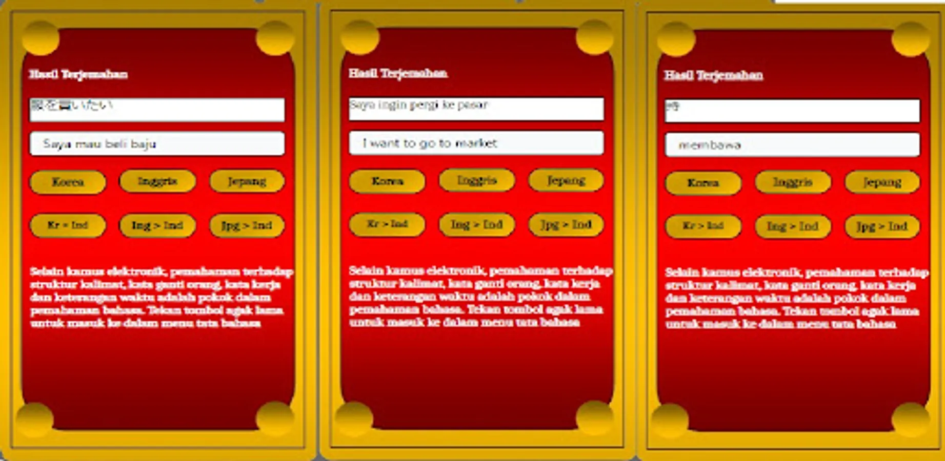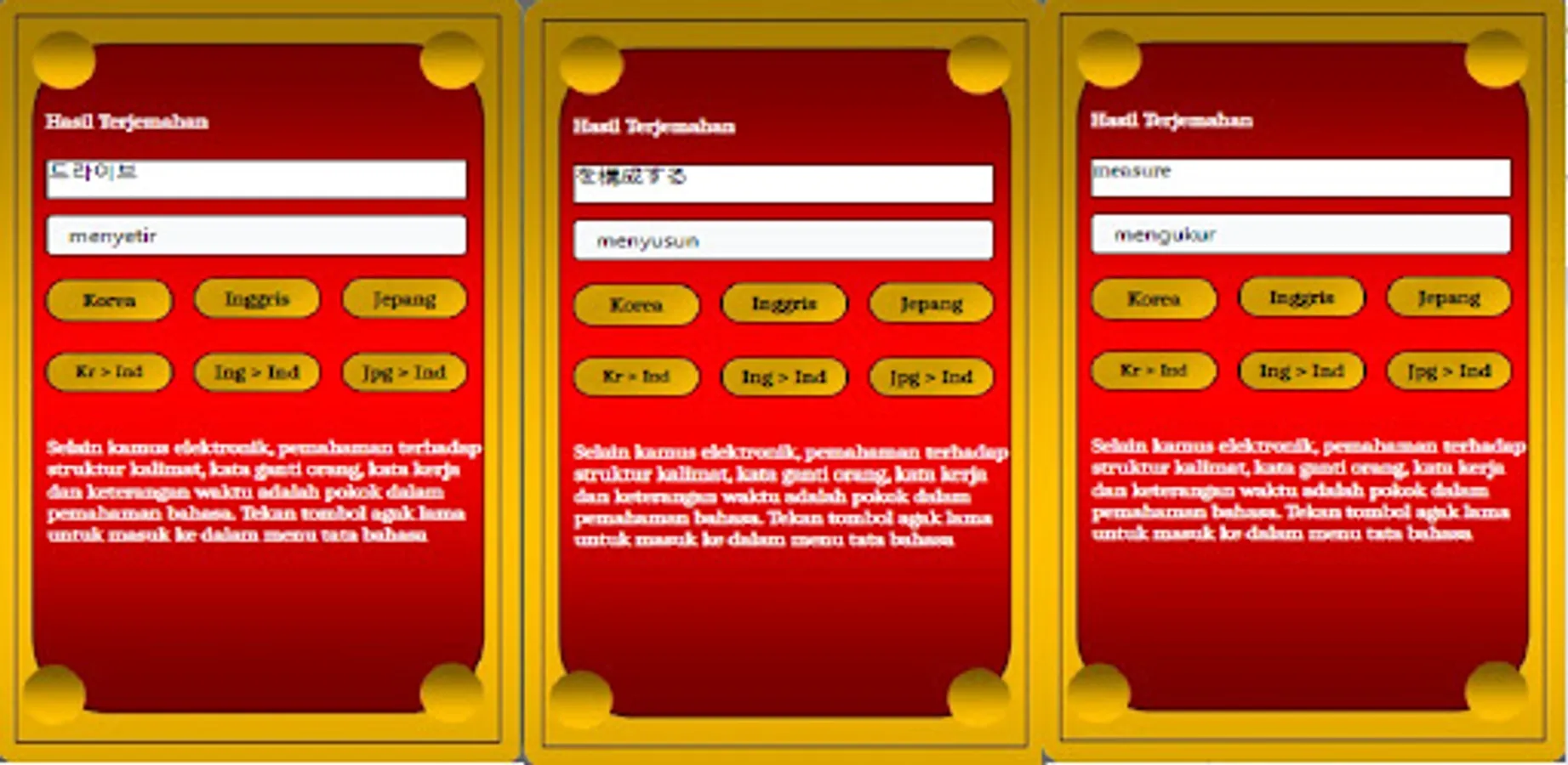 Kamus digital yang dilengkapi penjabaran sruktur kalimat, rumus tata bahasa, suara terjemahan dalam bahasa asing.