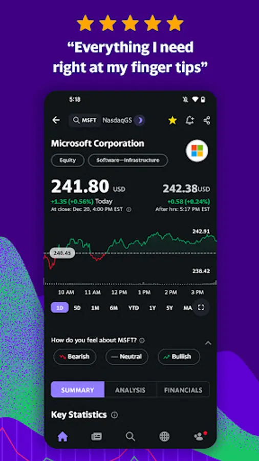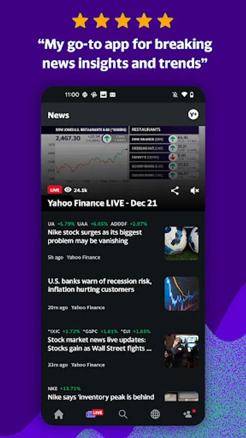 Never invest without the Yahoo Finance App again. We will equip you with the best financial information and analysis available so that you can confidently invest knowing that you are up to date with everything that is going on in the market in relation to news, stocks, crypto, bonds, ETF, mutual funds, or options.