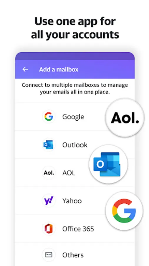It's time to get stuff done with the Yahoo Mail app. Get organized with the help of the Mail app. Just add your Gmail, Outlook, AOL, MSN, Hotmail, Yahoo Email accounts, or others to get going. We automatically organize all the things life throws at you, like receipts and attachments, so you can find what you need fast. Plus, we've got your back with other convenient features like one-tap unsubscribe, free trial expiration alerts and package tracking.