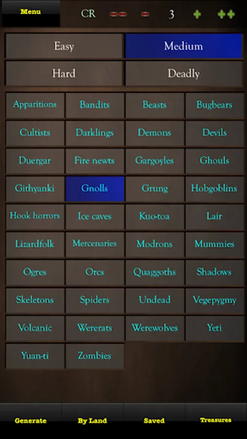Random Monsters & Treasure 5E is designed to allow the Dungeon Master to quickly generate encounters for an adventure, whether that is a wandering monster they come across in the Underdark, a series of encounters for a desert adventure or even filling a cave up with orcs, ogres and hill giants, which makes it a great D&D app for any DM's toolset.