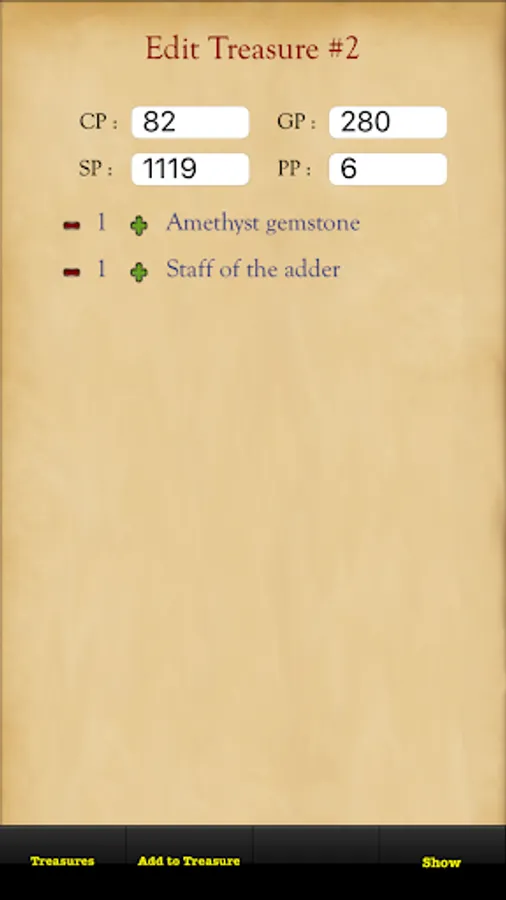 * Edit coin totals and add new magic items