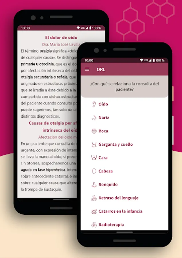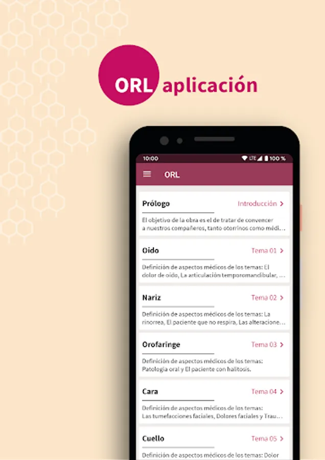 The book that this application accompanies projects through the writing by its authors a whole methodology of how to study a patient in the different pathologies of Otorhinolaryngology and Head and Neck Surgery without initially resorting to the set of diagnostic tests that are at our disposal.