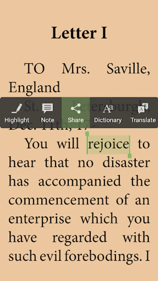 I'll save you precious reading time by optimizing the translation process from Aldiko to Morfix, by eliminating the unnecessary share menu.