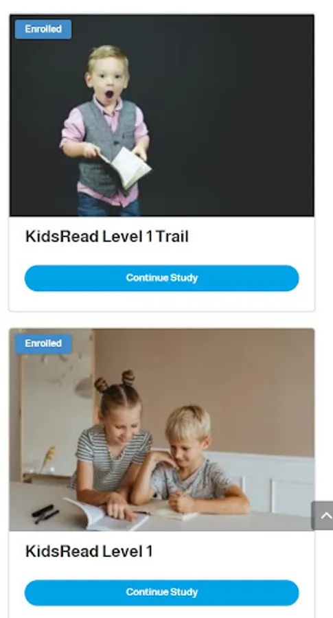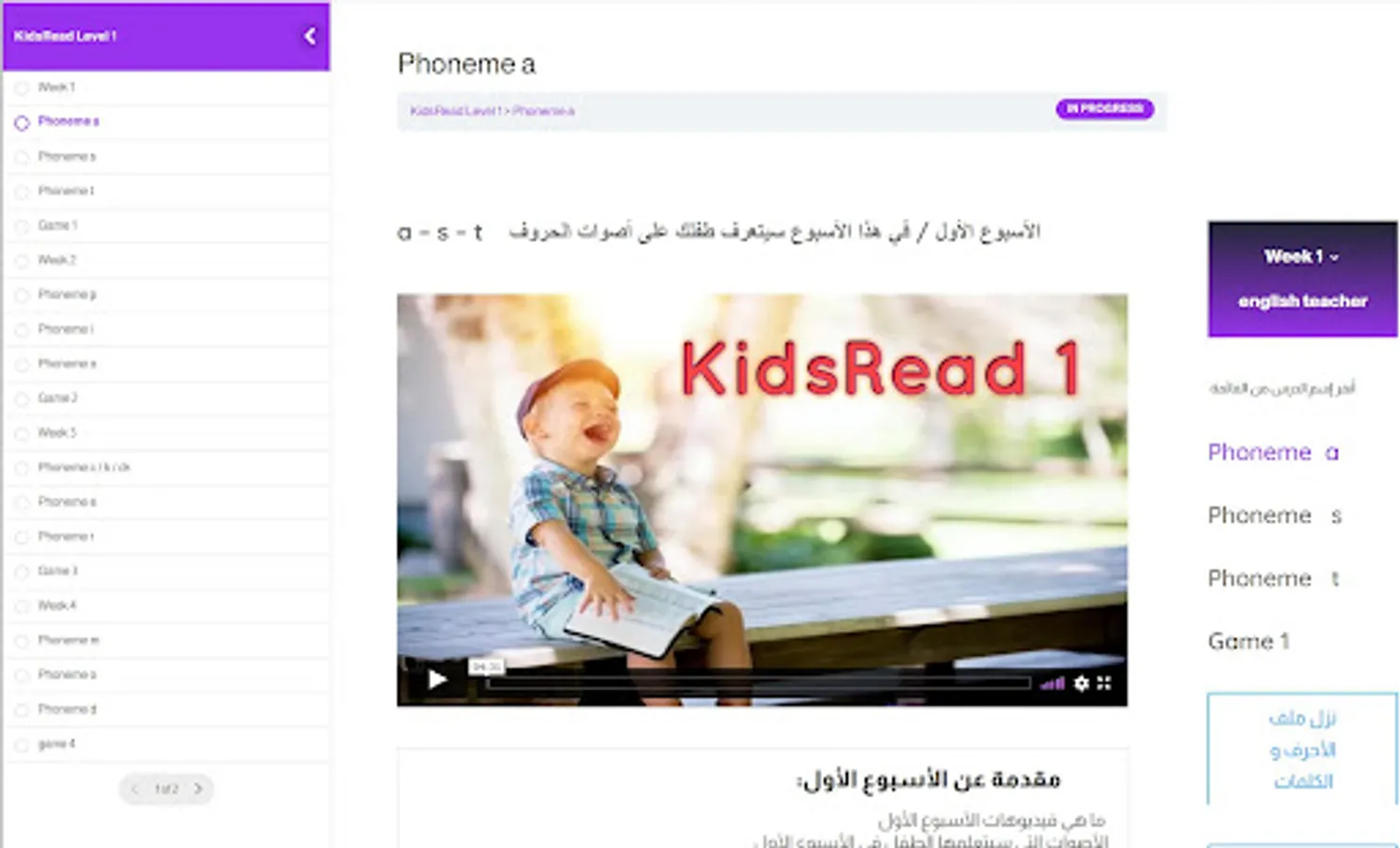 The teacher or parents attend their own recorded films that contain instructions on how to follow the child's progress in learning to read English through videos, weekly live meetings, games and cards.