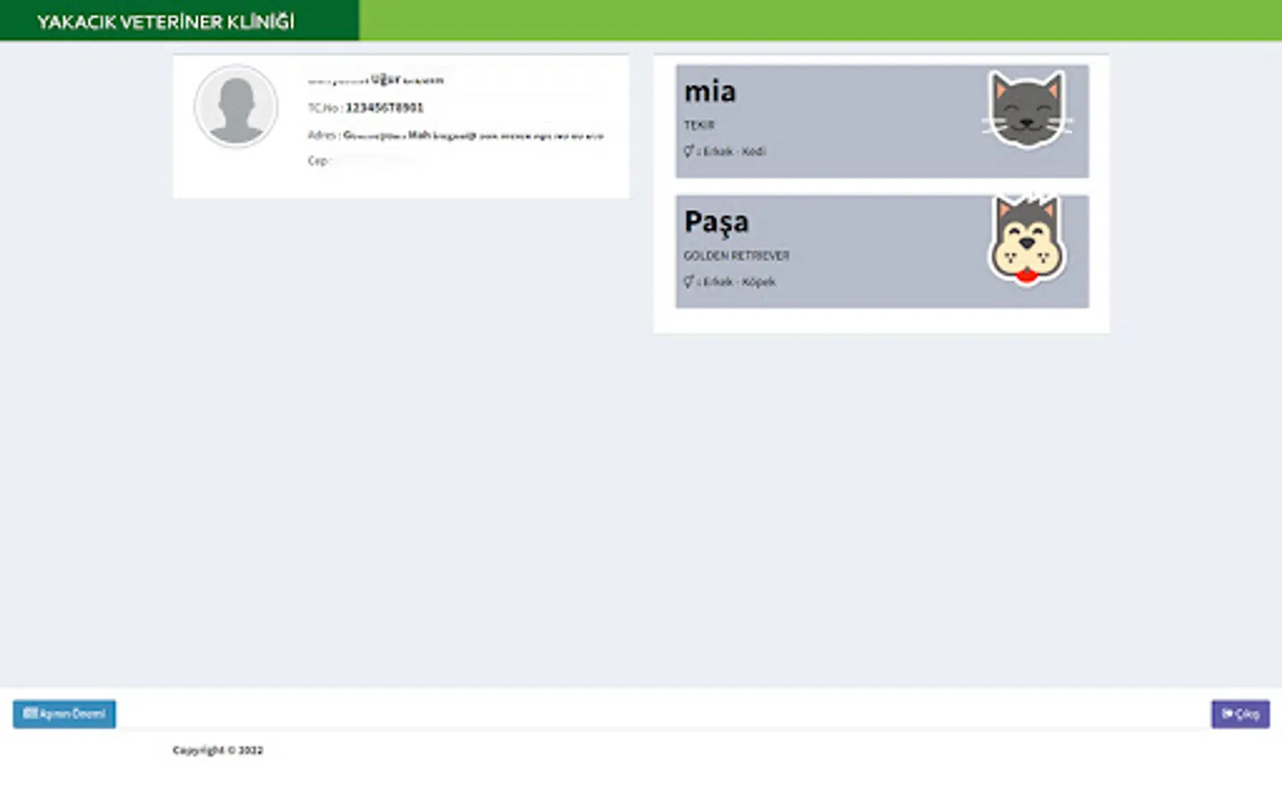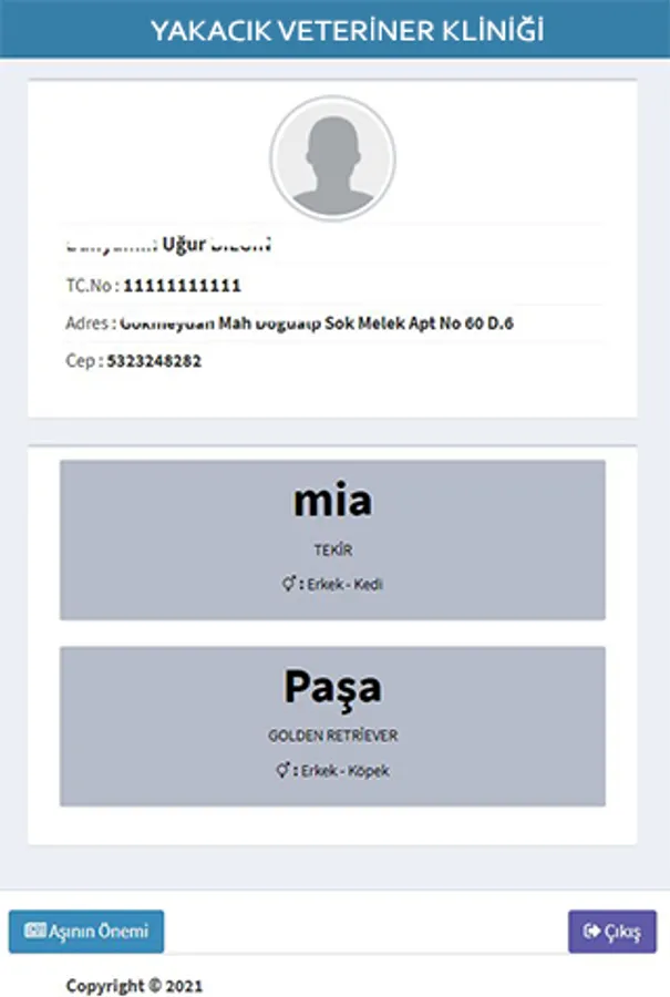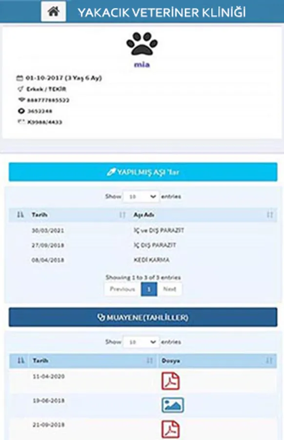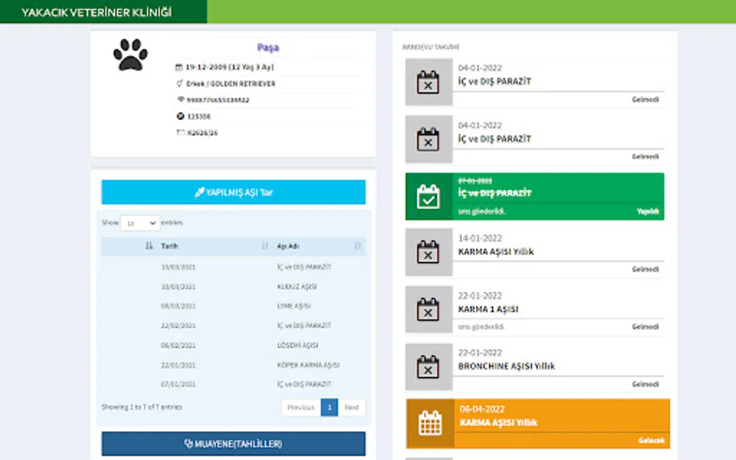Yakacık Veteriner Kliniği hasta/aşı takip programı (Sadece kliniğimizde kayıtlı hastalarımız kullanabilir).
