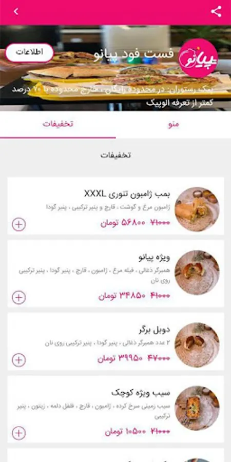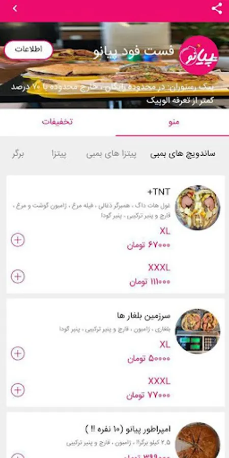 Online ordering of fast food piano by sending to all Tehran from the nearest branch
