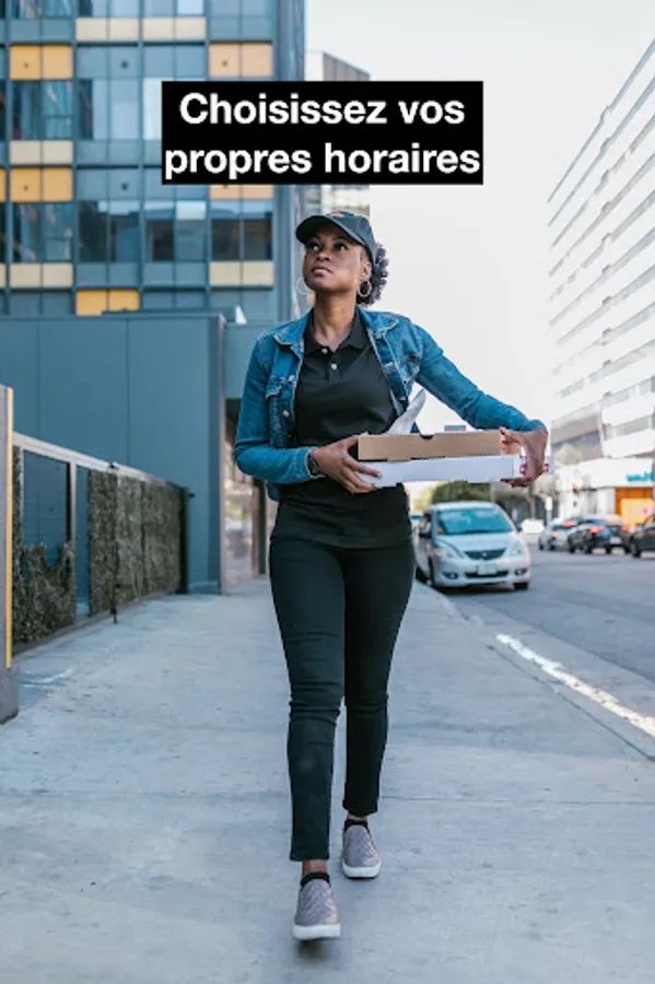 Inscrivez-vous pour livrer en quelques minutes. Vous n'avez besoin que de votre smartphone et de votre moyen de transport pour démarrer.