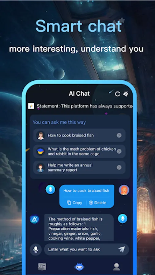 2. Personalized interaction: understand and analyze the user's sentences, understand the user's habits, provide users with a variety of interaction and communication methods, and allow users to freely obtain answers that better meet their needs.