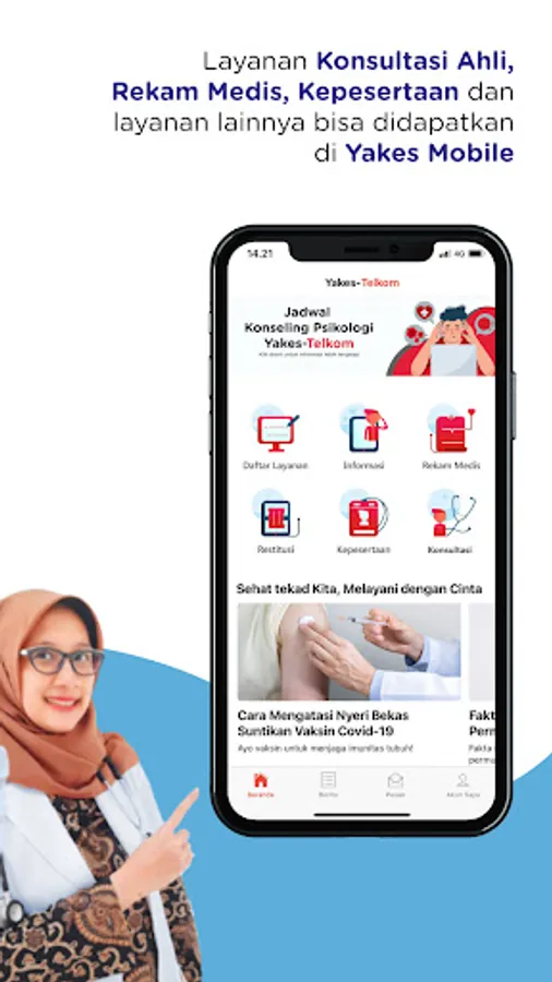Starting from Consultations with Doctors and Experts, Medical Records, Membership Data, Service Lists, Online Restitution, Health News and Yakes Information you can find on Yakes Mobile.