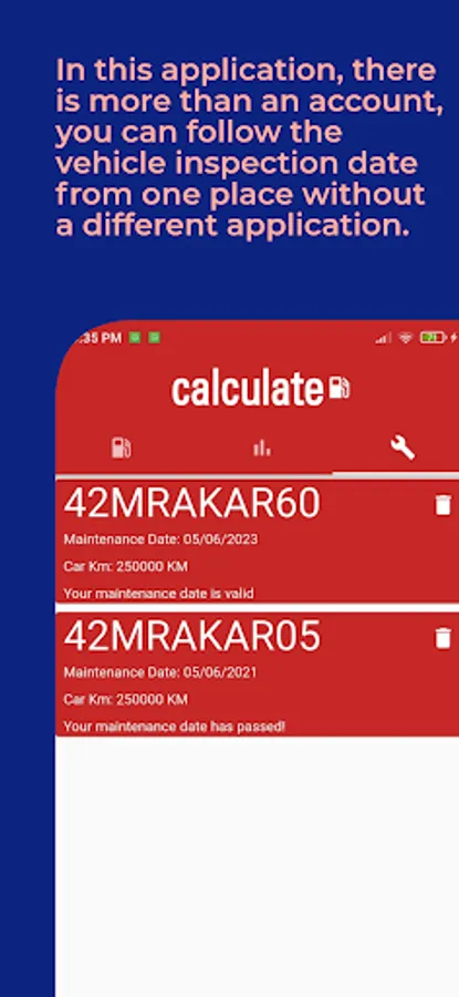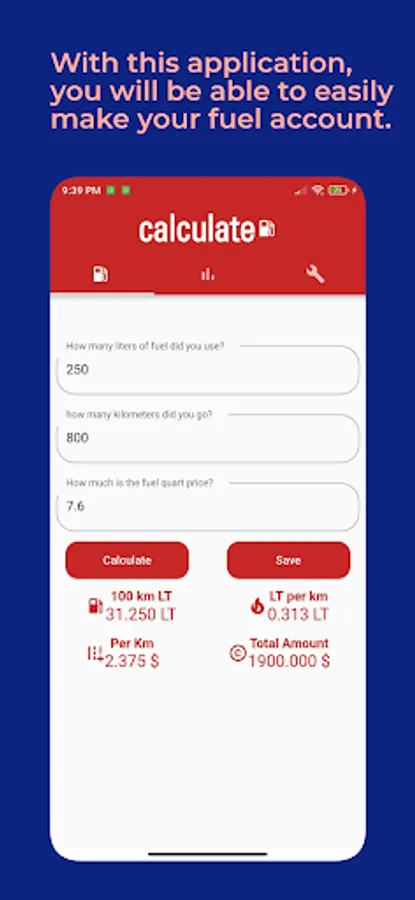 With this application, you can easily make your fuel account. This application easily calculates how much fuel your vehicle burns per hundred kilometers, how many liters it burns per kilometer, how many TL it burns per kilometer, and the total amount. You can also save this information and see the average fuel consumption graphically. In this application, there is more than an account, you can follow your vehicle inspection date from one place without a different application. Perform your fuel calculation easily. Calculate Fuel !