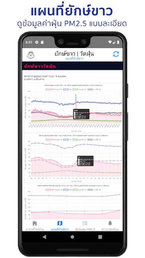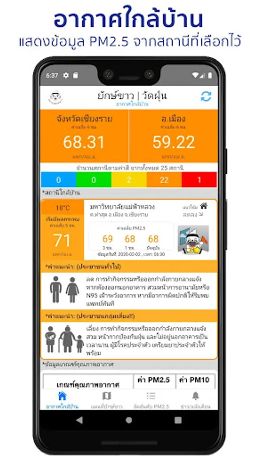 Can see the dust station near the house See the trend of dust bills. With warning instructions Along with learning how to prevent For good health