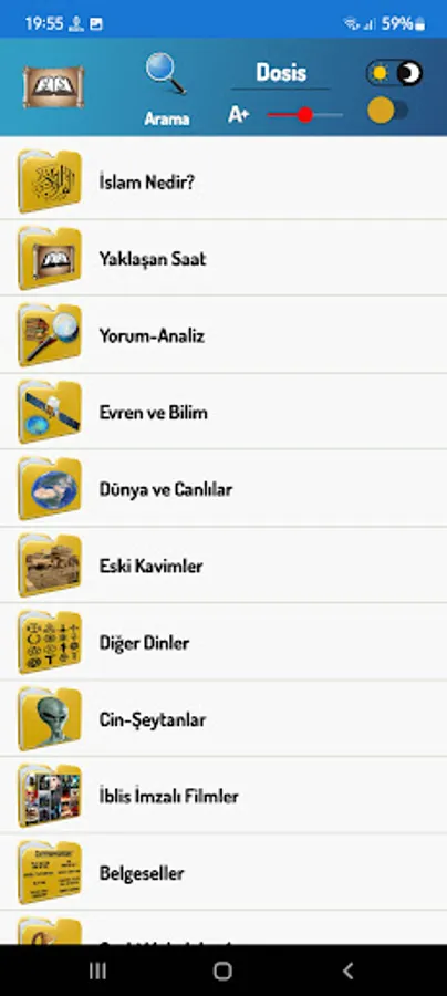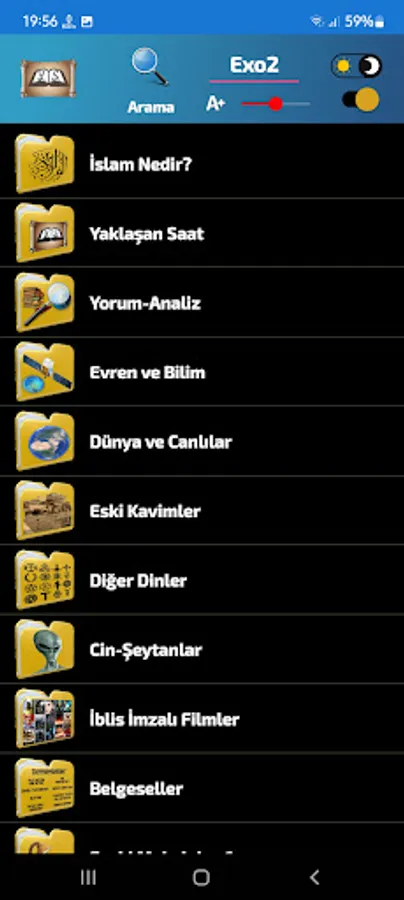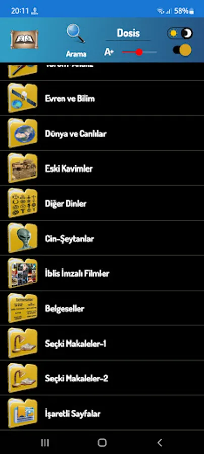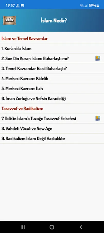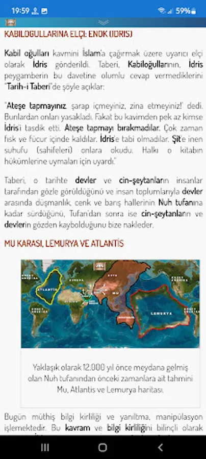 The article titles in the application, which include the History of Humanity, Gog Magog, Ancient Tribes, Iblis's Plans and many more, are as follows: