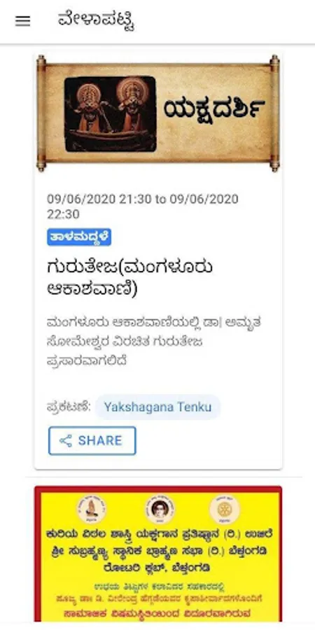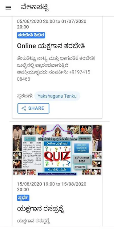 Events related to Yakshagana happening all over the world are made available to art lovers using this app, it includes but not limited to stage shows, Talamaddale etc