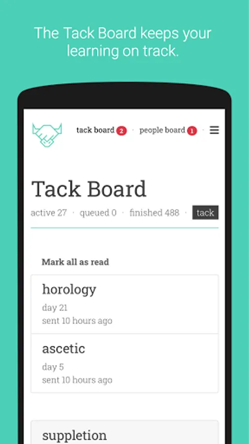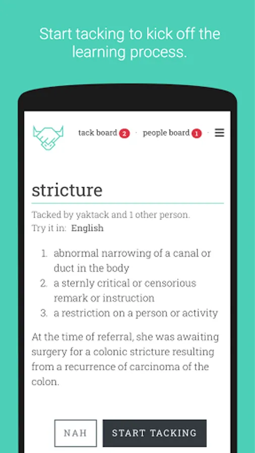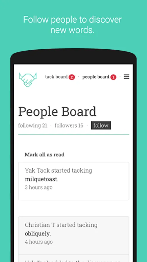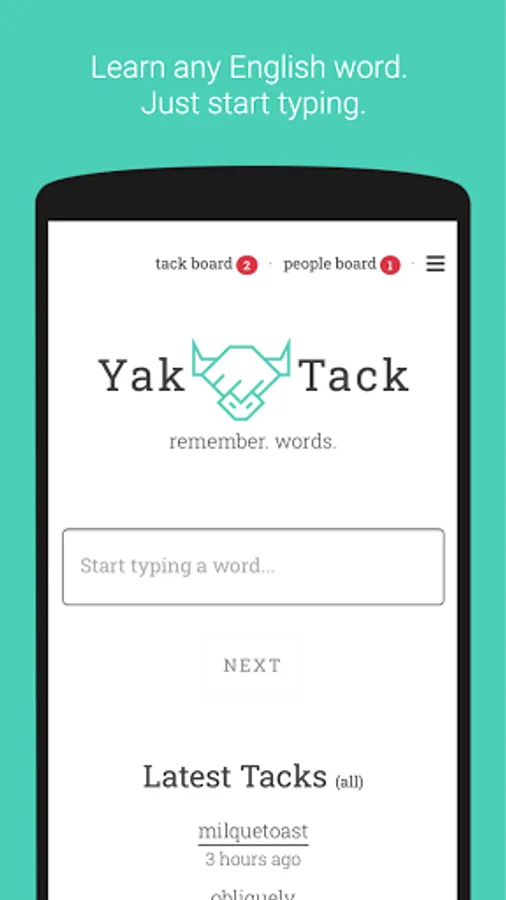 We've made it easy for you to connect with people on Yak Tack who are learning new words too. When they start tacking a new word, we'll tell you about it. They'll be your campfire friend.