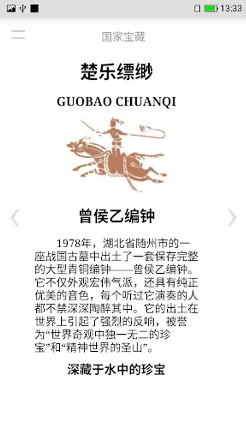 中国文物是传统中华民族文化精神的重要载体。特别是每一件国宝级的文物都凝聚着中华先祖的智慧,传递着中华民族的思想,延续着中华民族的文脉。
