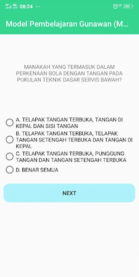 The design of the PMIG model which has a menu in the form of educator profile content, images, stretching, warm-up, basic volleyball technical materials in the form of text, images and videos. An evaluation instrument for volleyball game skills and cool-down images in the form of interactive multimedia which is packaged in a mobile-based application which consists of several pages. Multimedia learning of basic volleyball techniques contains various steps in learning basic volleyball techniques. A brief explanation in Indonesian is accompanied by a video at each step of learning, so it is expected to help students understand the material and practice.