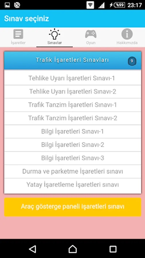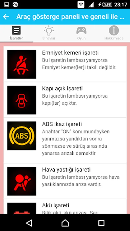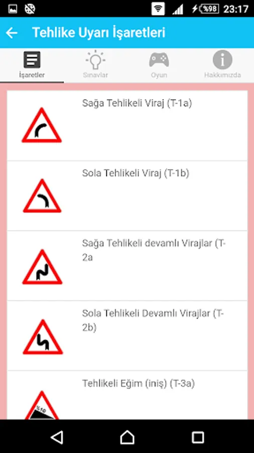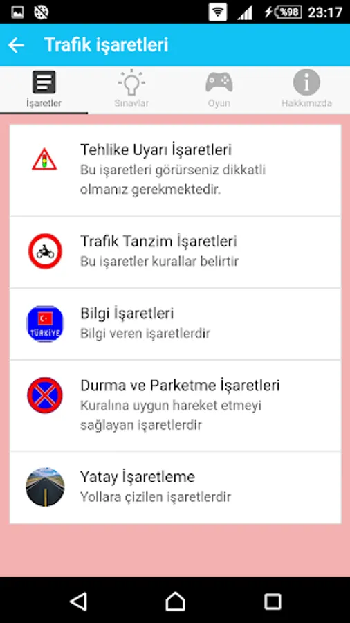 What comes to our daily life, understanding the signs and we want to tell to what? It contains such information, with information aimed at the formation of permanent and is a fun memory game that tests your knowledge with practice exams consisting of signs.