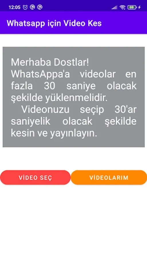 The application cuts and edits your videos for 30 seconds to be broadcast on Whatsapp. You can choose your video from your gallery and cut it to 30 seconds and then publish it on all social media tools, including Whatsapp. It is very easy to use.