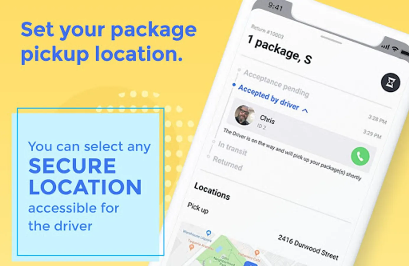 • A driver will pick-up your order, on-demand, and will take a picture to verify pick-up