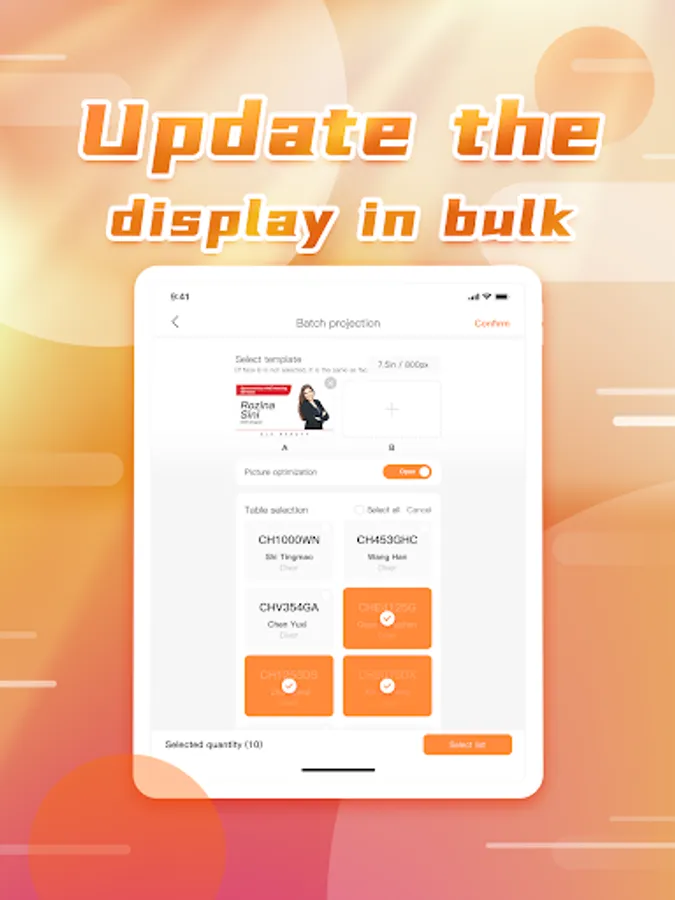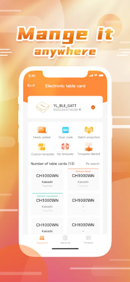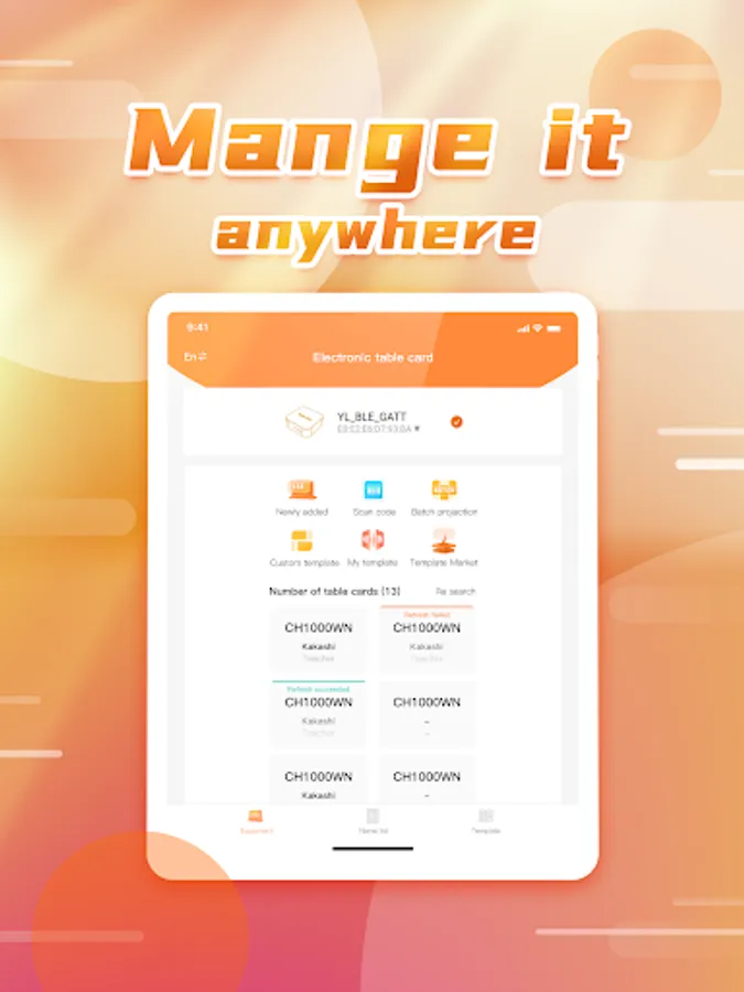 "Desktop Signage" is an application that can modify the contents displayed on the e-ink screen through bluetooth communication protocol. It has the functions of device search, management, refresh, batch screen casting, and customized templates. It has the features of low power consumption, simplicity, efficiency, environmental protection and paperless product.