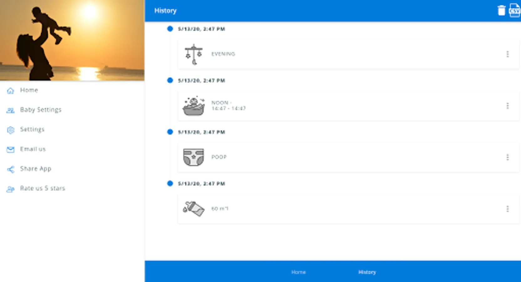 👶In baby settings, you can also create as many kids as you want while keeping history and color theme to each of them.