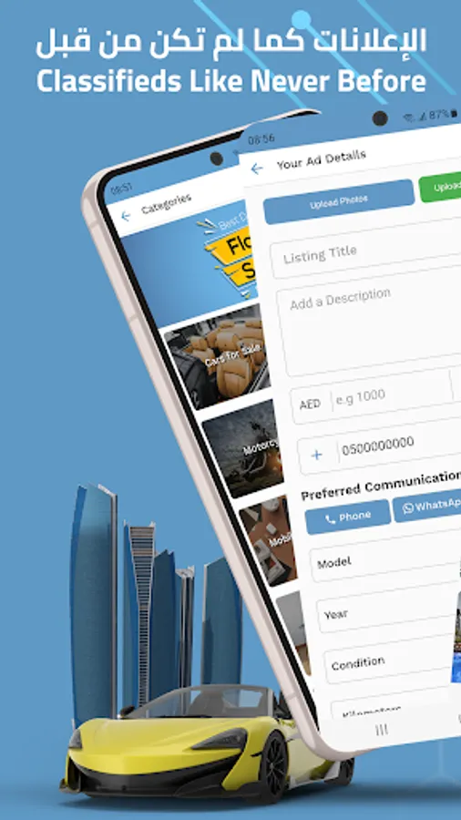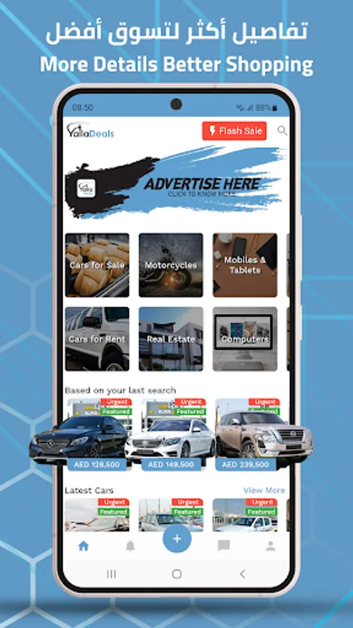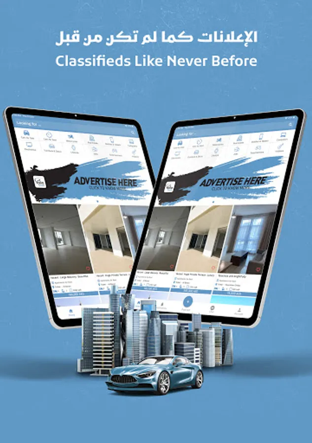 On Yalla Deals you can post or search for anything in real estate, cars for sale, car for rent, electronics, furniture, jobs, and more! We also offer many built-in advanced features like 360 virtual tours for real estate properties, embedded videos, five easy ways to communication (Yalla Chat, Call, WhatsApp, SMS, Email), agents management, and easy to use ad performance metrics & scheduled reports.