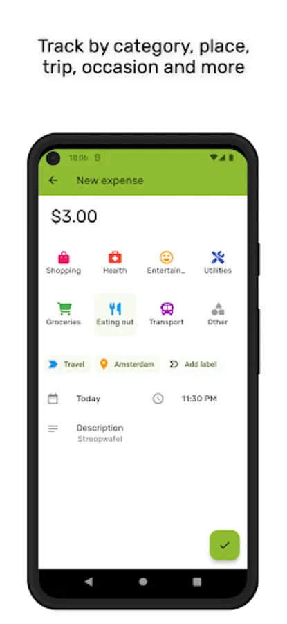 - Track your expenses and categorize each expense