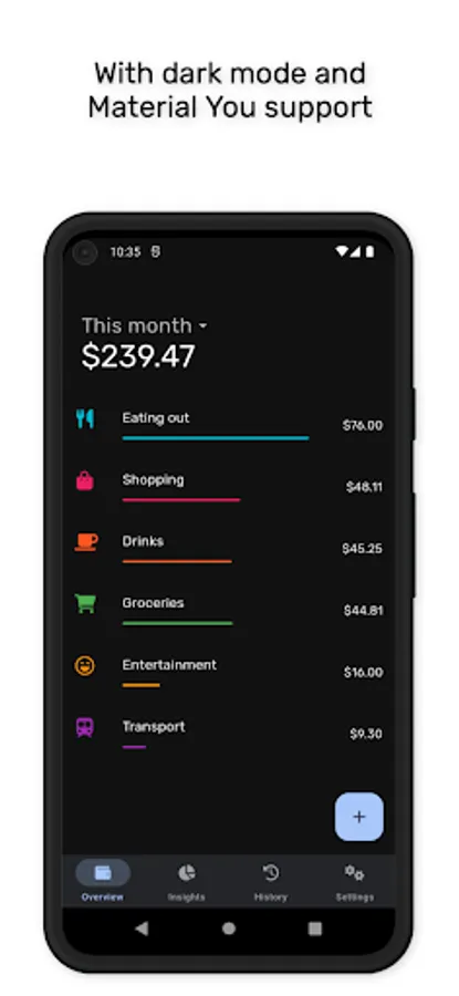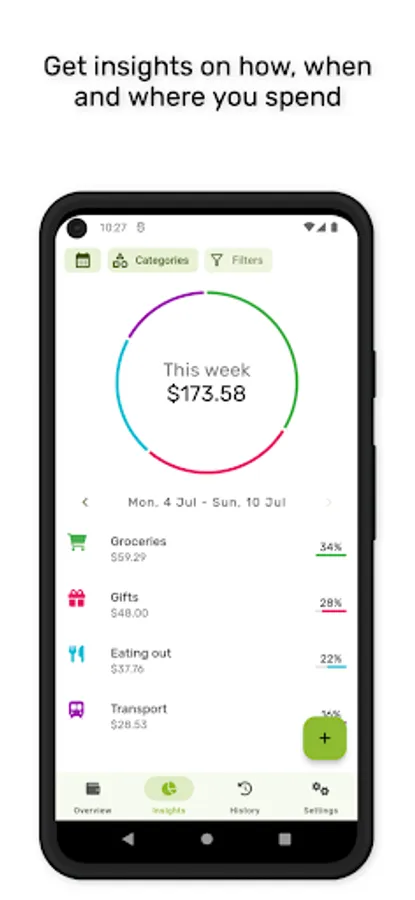 - View insights on your spending with charts, graphs and statistics