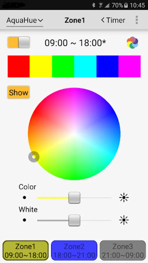 The AquaHue App controls the AquaHue LED aquarium light(manufactured by Yalumi™) through Bluetooth connection. The latest version is 2.0