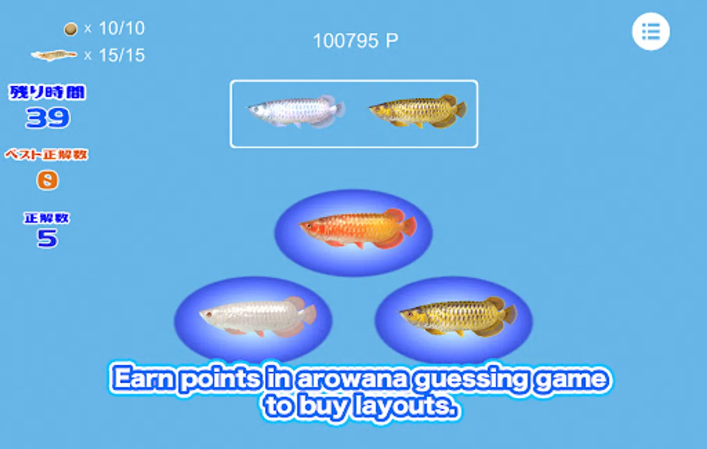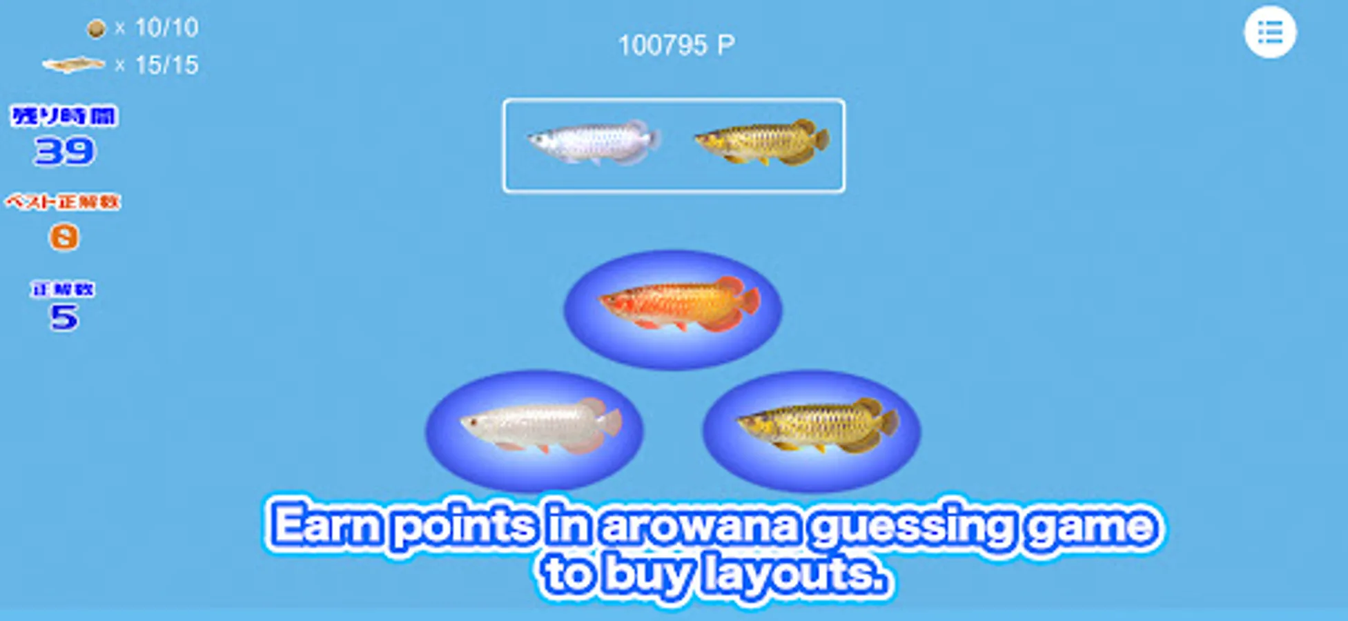 ●When you run out of food, play the Arowana guessing game.