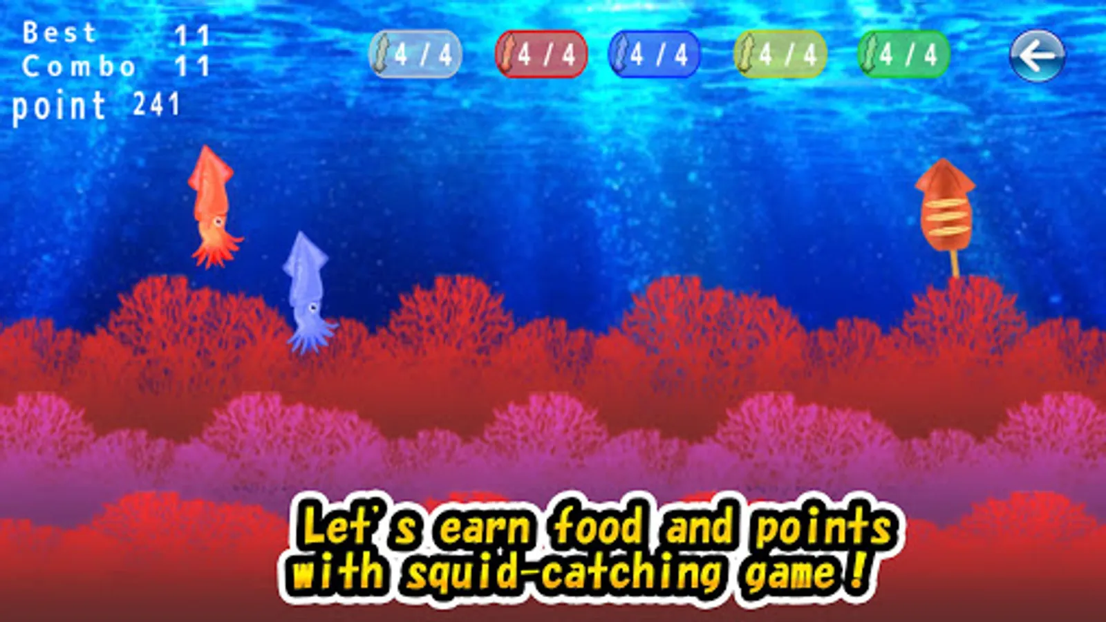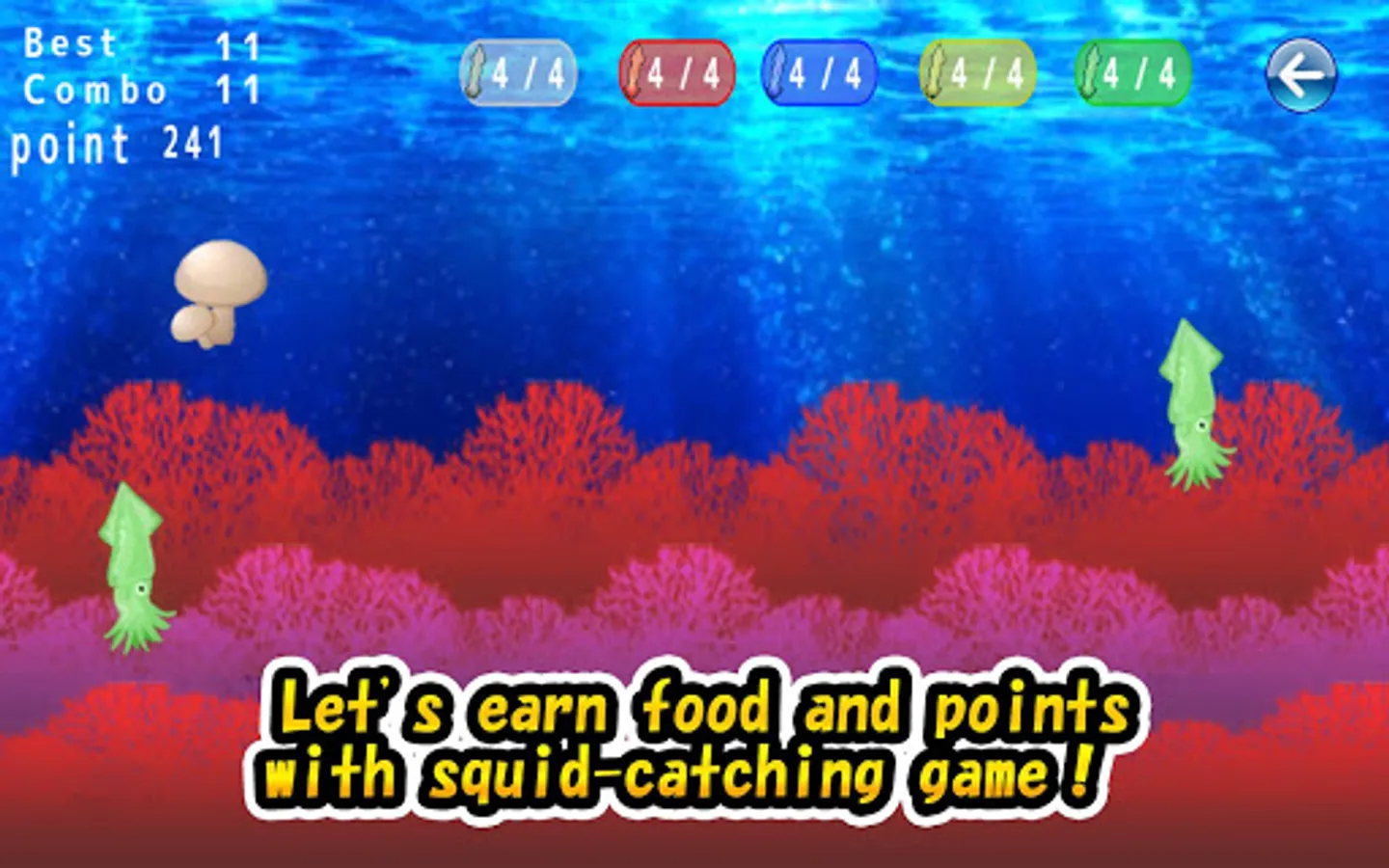 ■ Let's easily get food and points with squid capture game.