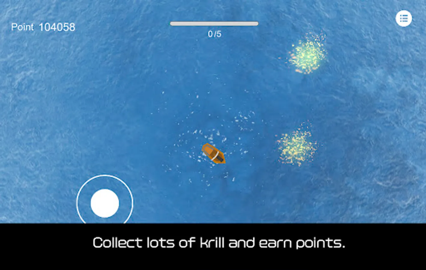 You can catch krill by taking a boat out to sea. You can control the boat with the virtual pad. You can get krill by simply passing through the places where the krill is glowing.