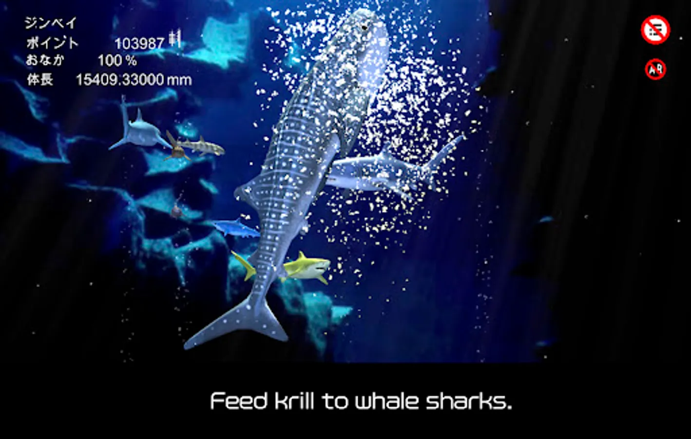 Whale shark feeding has been recreated. Feed krill to the whale sharks. Enjoy watching them eat krill. While the whale shark is eating the krill, you can earn high speed points. You can get points for high speed.