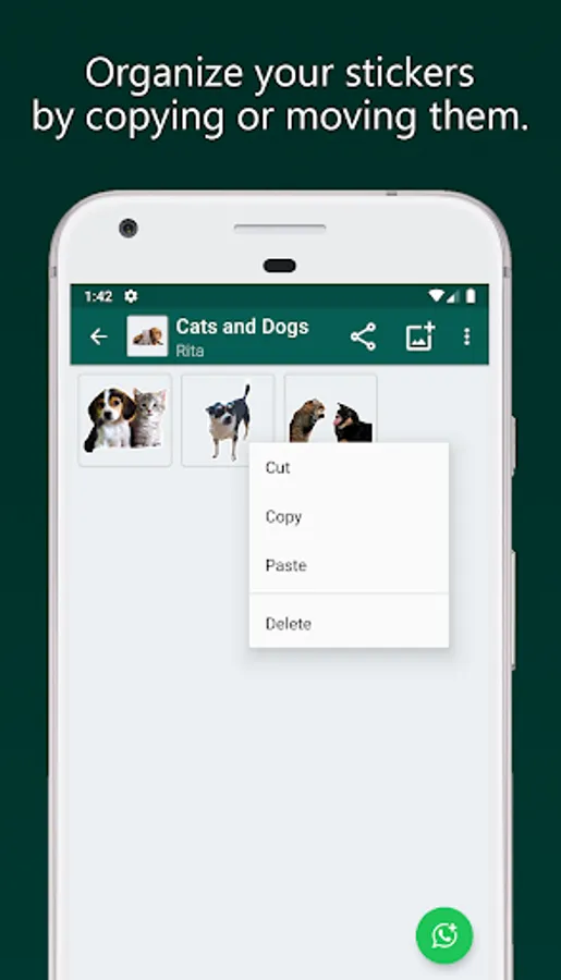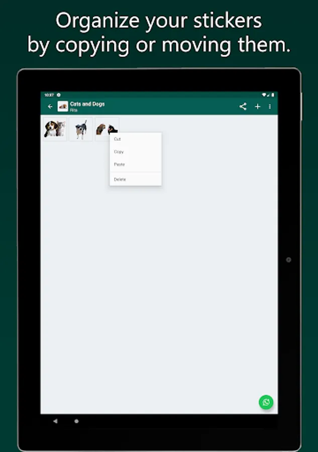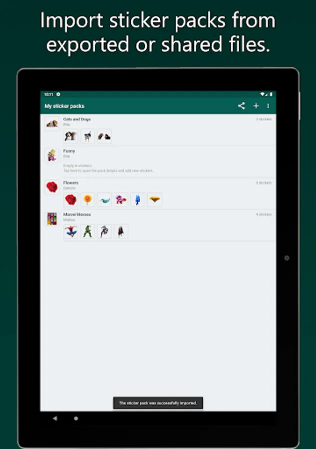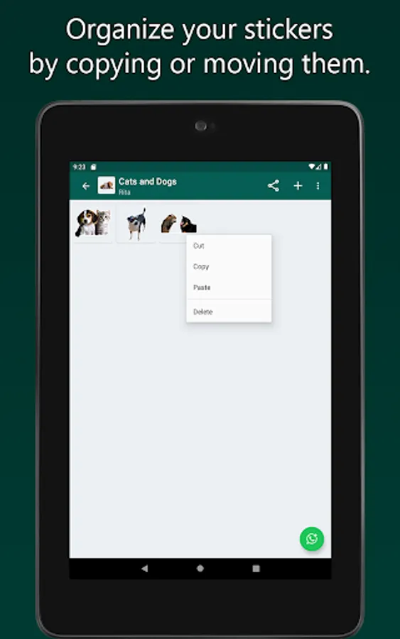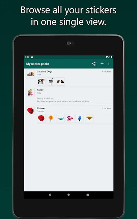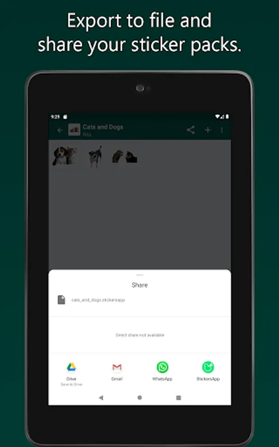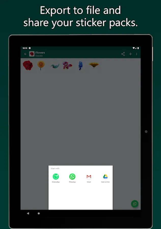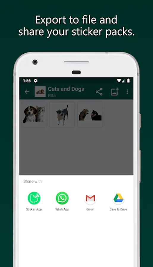 Sticker "Share": send the sticker image (or meme) directly via WhatsApp, Instagram, ...