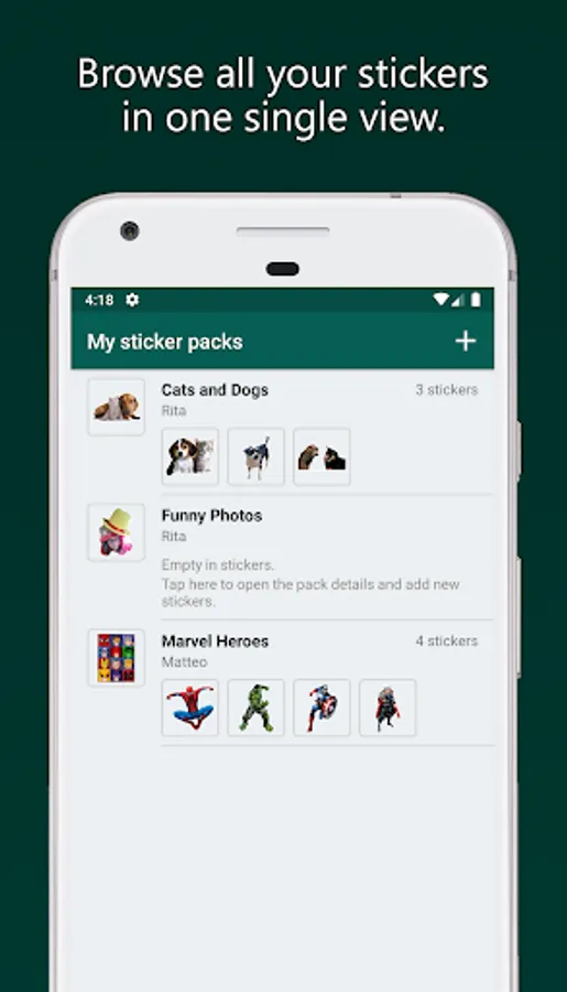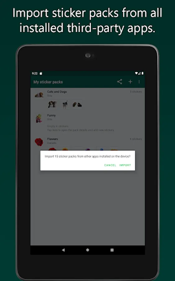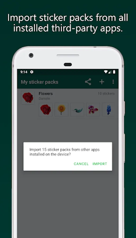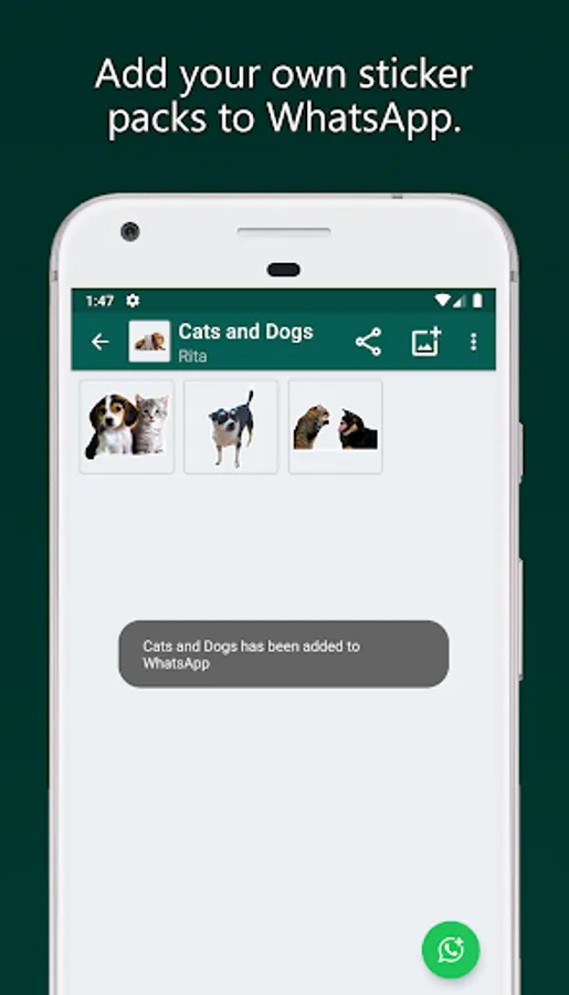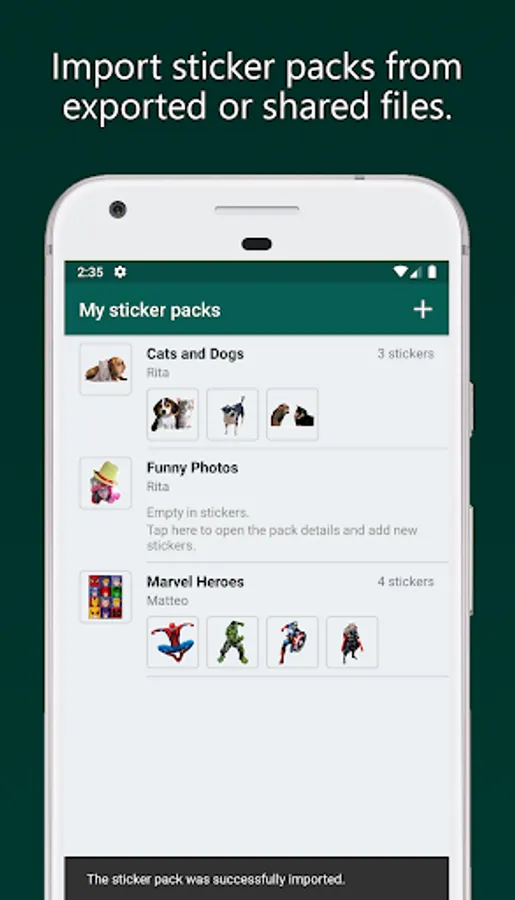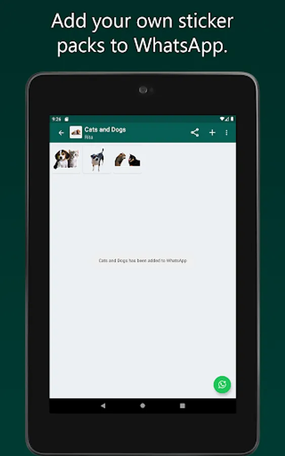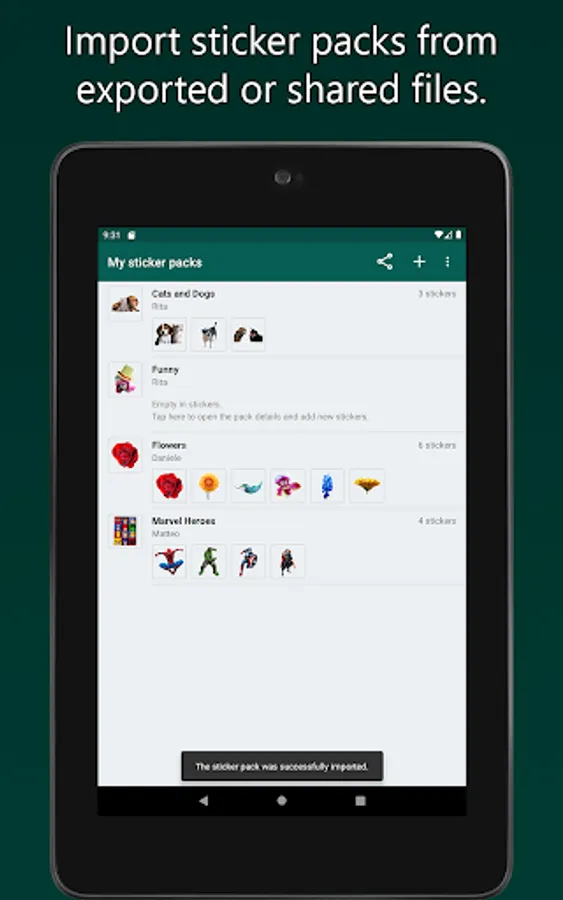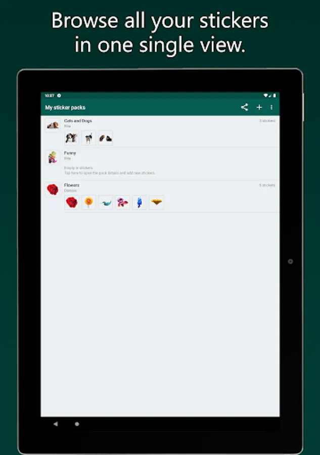 Sticker "Share": send the sticker image (or meme) directly via WhatsApp, Instagram, ...