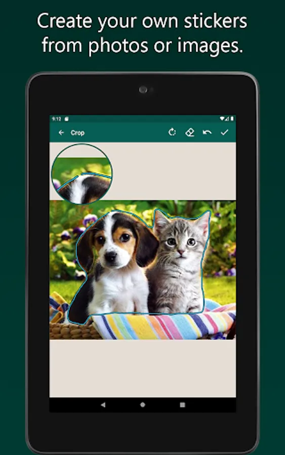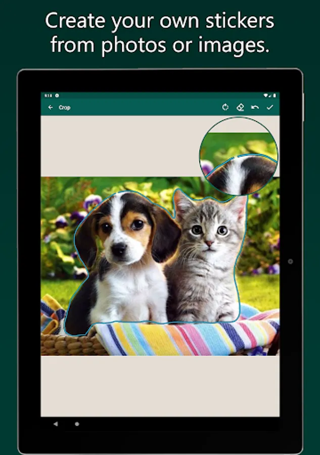 "Brush" cropping tool: select the area to be cut out simply by "coloring" (or clearing) it with one or more touches.