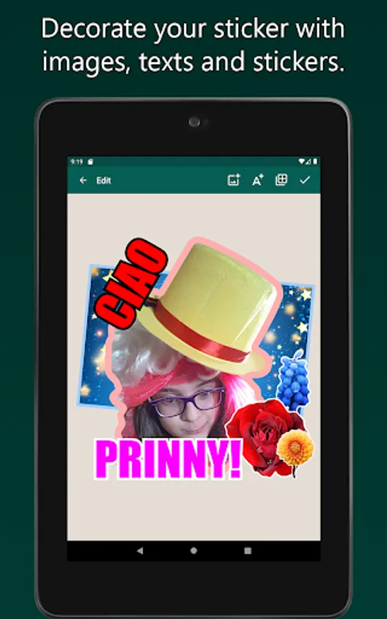 You can make your stickers by freely composing one or more images, texts or stickers.