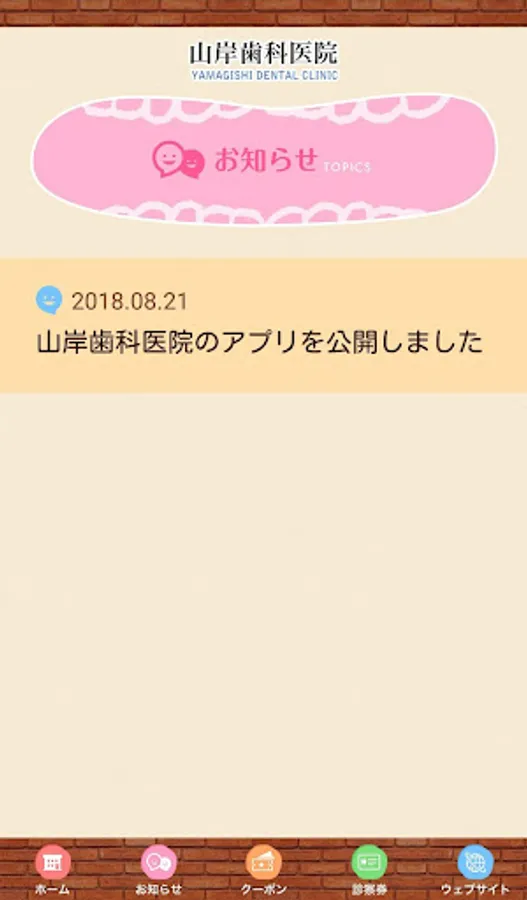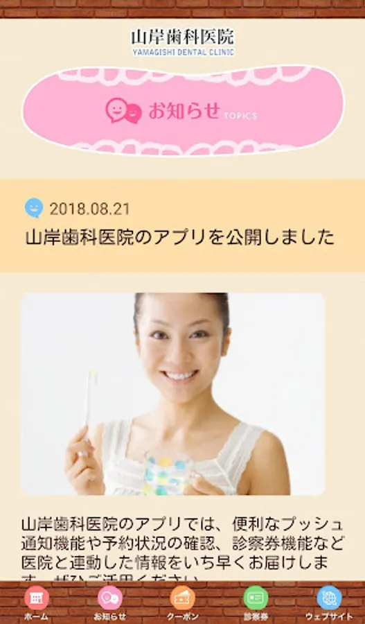 With this application you can quickly deliver the latest information on 【Yamagishi Dental Clinic】, consultation ticket function which can be used when forgetting application-specific advice or examination tickets, and even one button can be reserved.