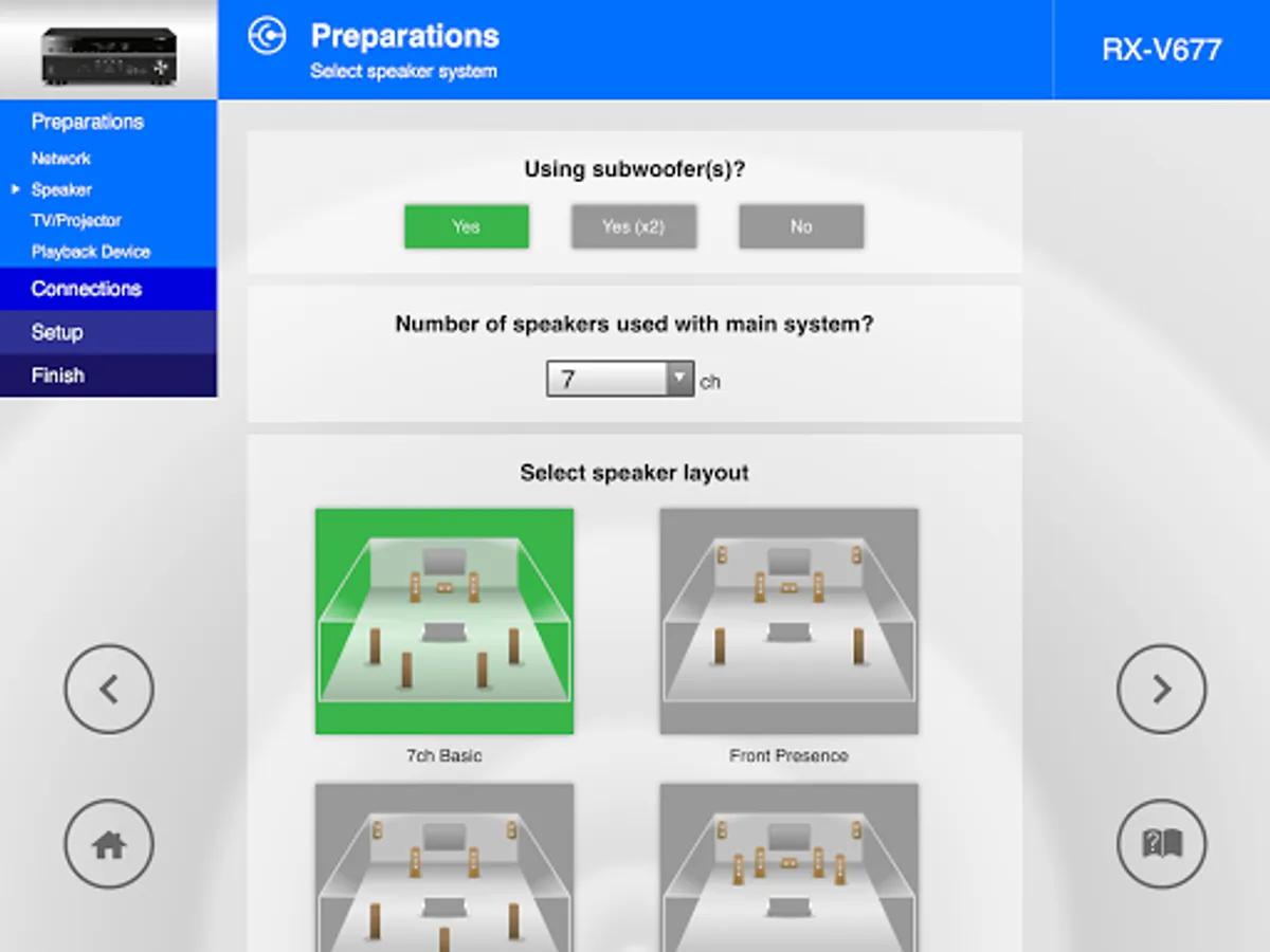 This app guides you through the various settings such as speaker connections, TV and source device connections and assigning the power amp.