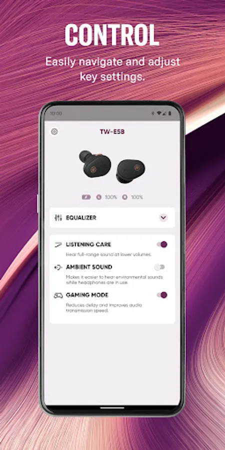 The Yamaha Headphone Control app allows custom feature adjustment and personalization for select Yamaha headphones and earbuds.