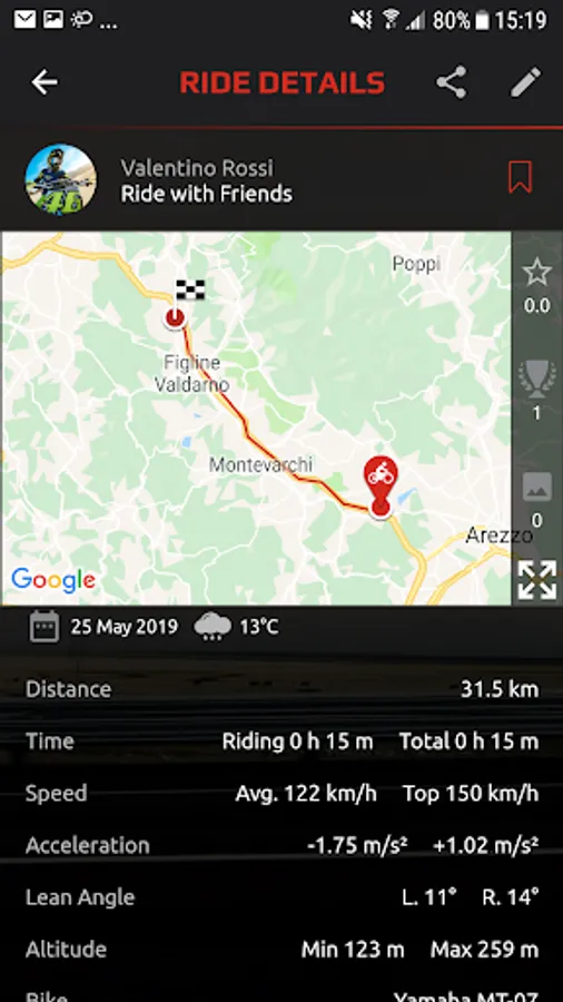 - Track your rides with real time statistics such as lean angle, acceleration, speed and more.